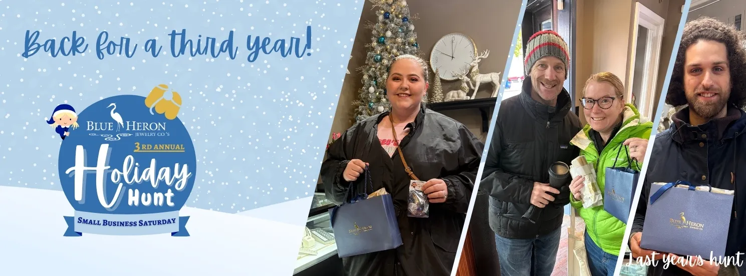 Small Business Saturday is a day to celebrate the local businesses that make up the heart of our community. Blue Heron Jewelry appreciates your support all year round, and we're giving back with a fun and festive tradition -- the Third Annual Holiday Hunt!